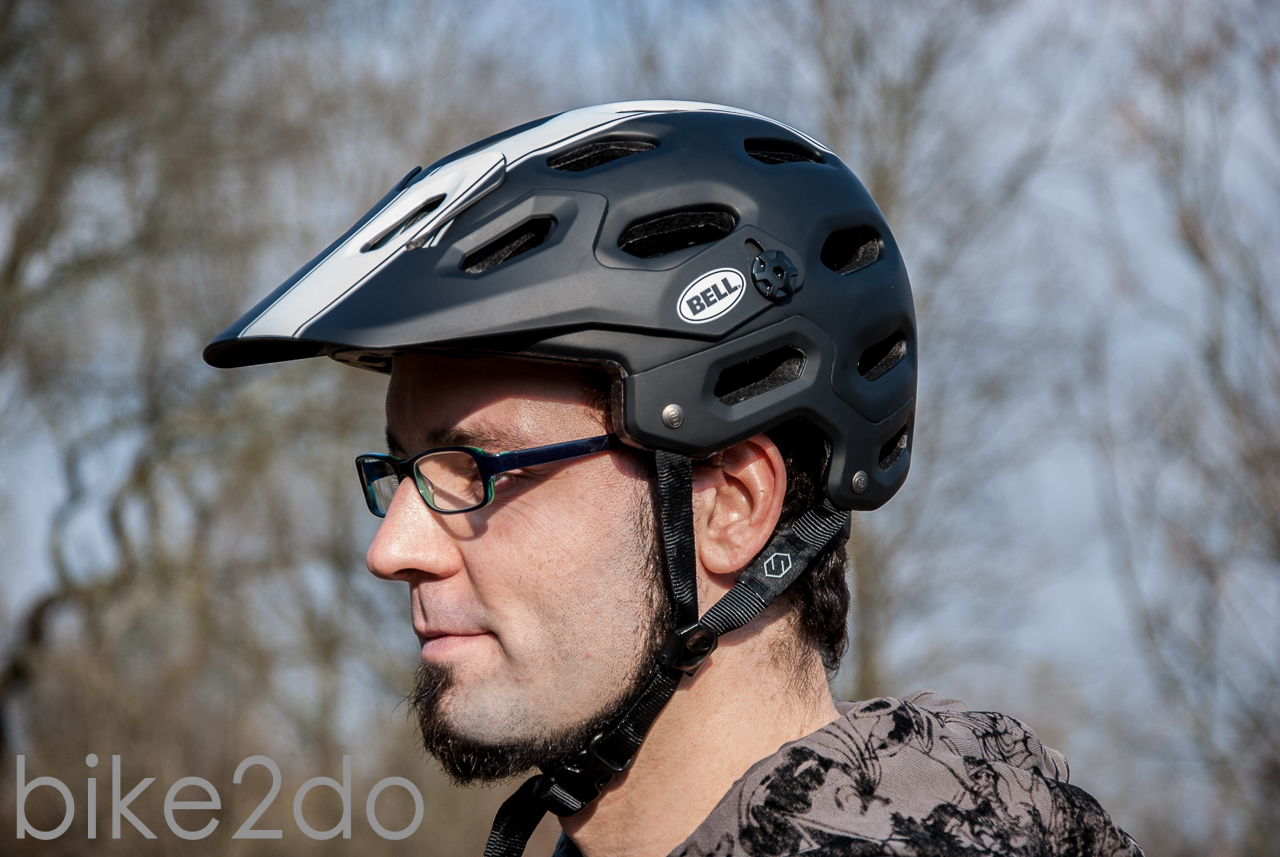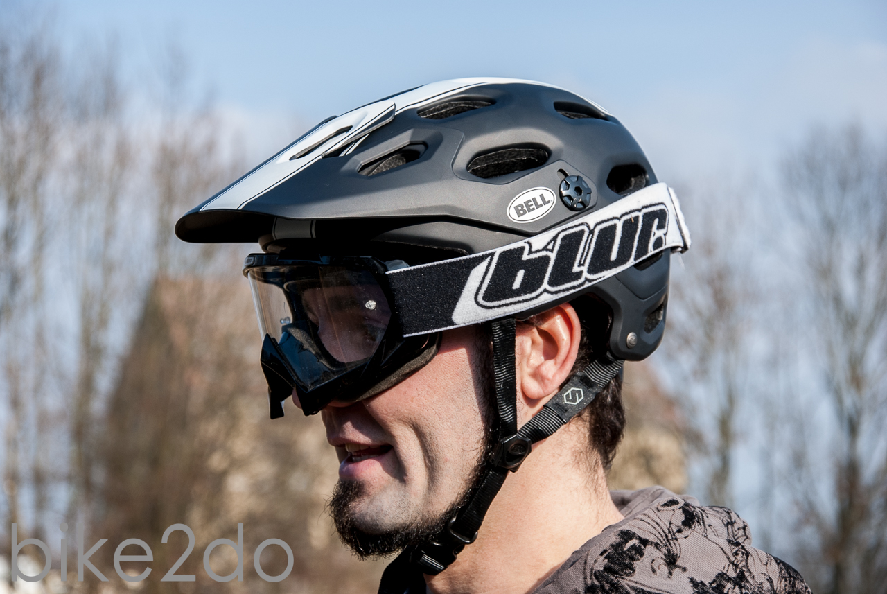 Dem aufstrebenden All-Mountain und Enduro Bereich ist es zu verdanken, dass es immer mehr Helme gibt, die eine größere Fläche vom Kopf verdecken und nicht aufs letzte Gramm rationalisiert sind. Dabei erinnern die aktuellen Enduro Helme zweifelsohne an eine Kreuzung aus klassischer Halbschale und einem MTB Helm. Preislich legt man je nach Modell zwischen 100 – 200 € hin. Aktuell etablieren sich auch Einsteigermodelle unter 100€. Der Sicherheit des Bikers kommt das natürlich sehr zu Gute. Nach langem Marktdurchforsten und dem setzen meiner Budgetgrenze entschied ich mich für einen der wohl bekanntesten Helme, den Bell Super. Für mich in klassischem matt schwarz, aber mit Retro Rennstreifen.