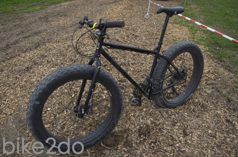 Surly ist vor allem bekannt für seine „Big-Wheel Parts“. Die fetten Schlappen sind prädestiniert für Untergründe, auf denen normale MTB Reifen an ihre Grenzen kommen: Schlamm, Schnee, Sand, … Oder aber steile und nasse Wiesen wie in Willingen. Wenn der Luftdruck der Reifen erst einmal auf ein Minimum reduziert ist, generieren die 3,8″ breiten Reifen Traktion, die nicht mehr feierlich ist. Diese liegt in jeder nur erdenklichen Situation vor. Der Vortrieb wurde erst durch eine zu steile Rampe gestoppt, durch die sich die Front des Bikes aufbäumte und ein Abstieg nach hinten unumgänglich war.