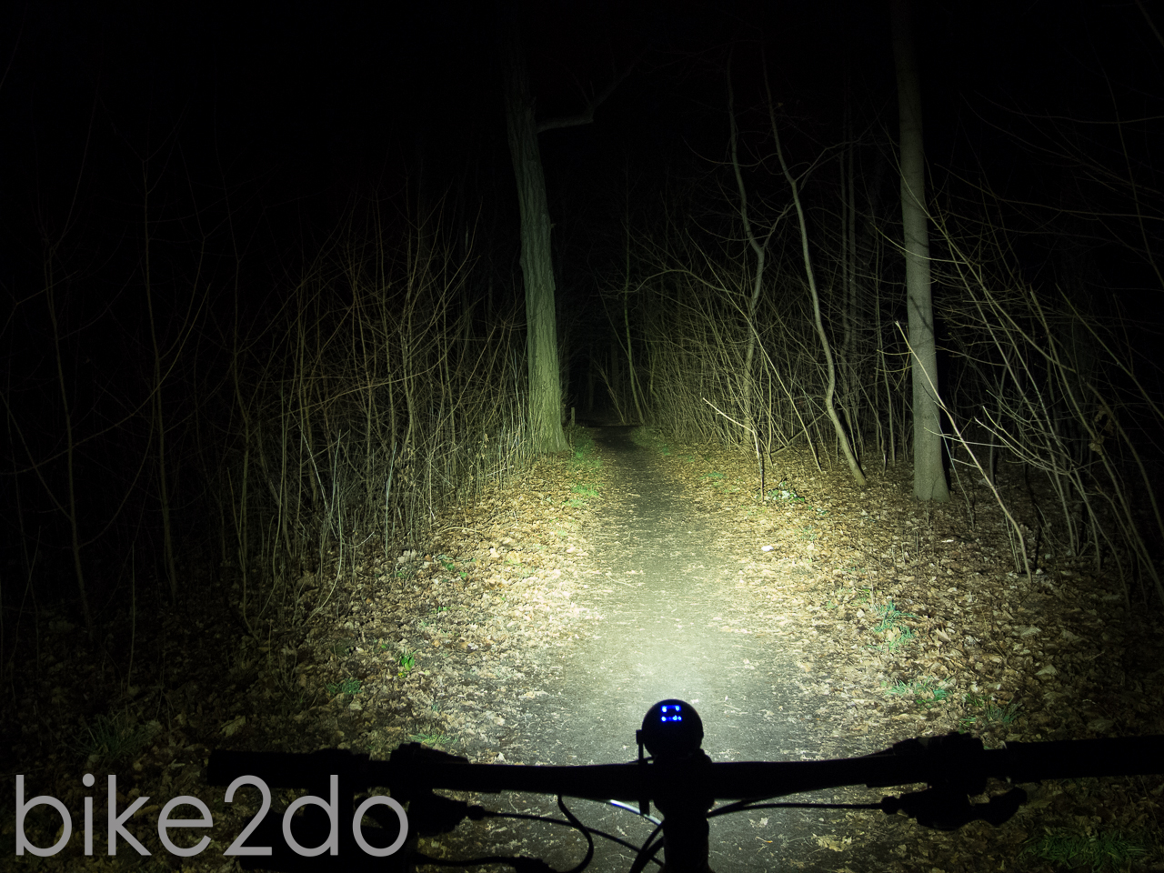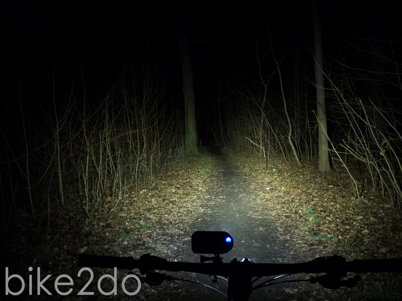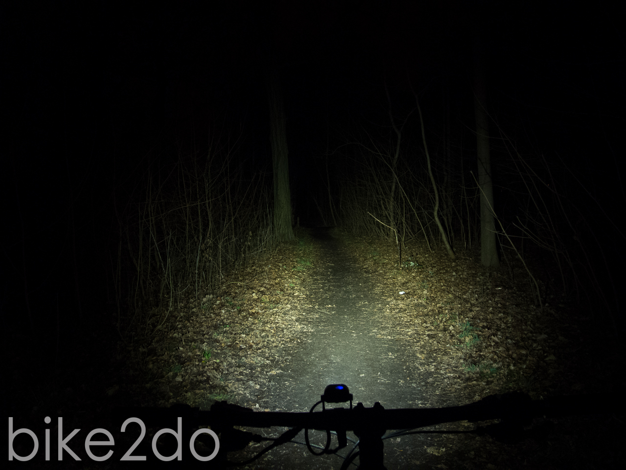 In der Praxis kann die Lampe trotz ihrer drei LEDs nicht mehr ganz überzeugen. Die Lichtausbeute der Cree XP-G Chips ist mit knapp 700 Lumen zwar gut, liegt aber weit unter der Herstellerangabe von 1280 Lumen. Im Wald kann die Leistung aber durchaus noch überzeugen, solang es nicht zu schnell wird und man sich eher auf langsamen Trails befindet. Schon die Spotlinse erzeugt dabei ein sehr homogenes und nur leicht spotiges Lichtfeld; die Streulinse ist in meinen Augen bei der Leistung dieser Lampe nicht nötig. Man darf nicht zu viel von der Lampe erwarten, jedoch sorgt die Adaption des Auges für ein einigermaßen gutes Ergebnis. Nicht ganz optimal ist meiner Meinung nach die bereits erwähnte Halterung. Dabei ist es weniger ein Problem das diese aus Kunststoff ist, sondern das der verwendete Gummi auf der Unterseite der Halterung nur wenig Halt bietet und zum anderen die verbauten Gummiringe sehr weich sind. Dies ergibt eine wacklige Konstruktion welche zusammen mit der Höhe des Aufbaus nicht immer für ausreichend Halt sorgt.