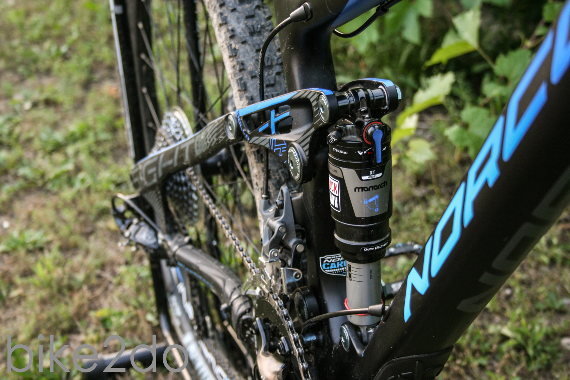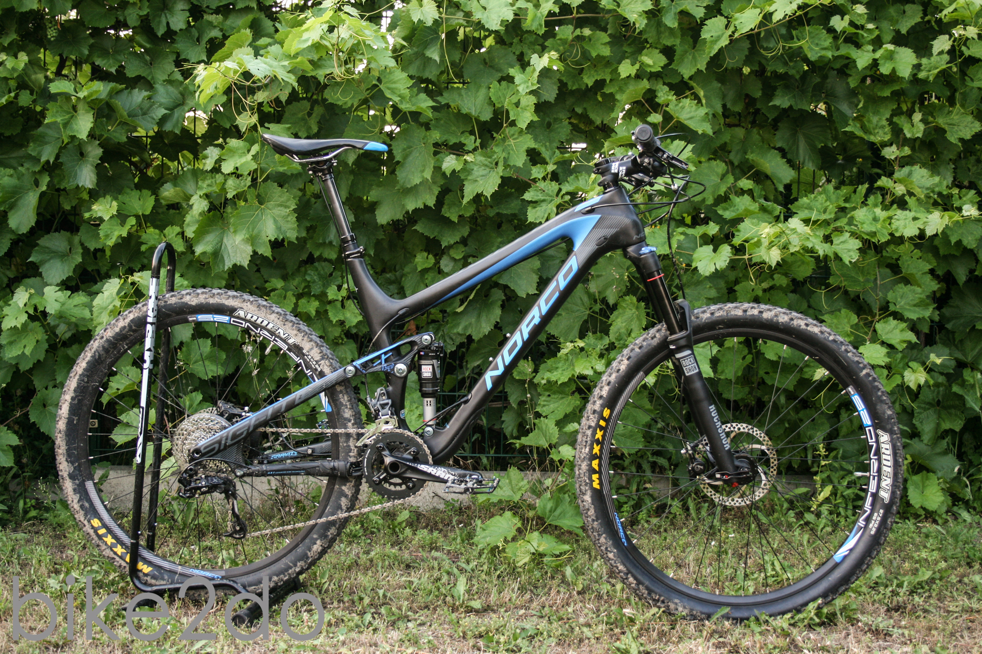Das Norco Sight carbon in der 7.2 Ausstattungsvariante kommt wie gesagt auf 27,5“ Laufrädern daher. Hier drehen sich von innen nach außen Formula Naben, Sun Inferno Felgen und Maxxis Ardent Reifen. Für die entsprechende Dämpfung sorgt der RockShox Monarch RL Dämpfer hinten und die RockShox Relevaltion RL solo air Gabel vorn, jeweils mit 140mm Federweg. Der Antrieb besteht aus einem SRAM X7/X9 Mix, gebremst wird mit Formulas C1 Bremse und weitere Anbauteile wie Lenker, Vorbau und Sattel sind von Norco selbst. Als Sattelstütze fungiert eine X Fusion Variostütze, die allerdings bereits vor dem Test etwas bockig war.