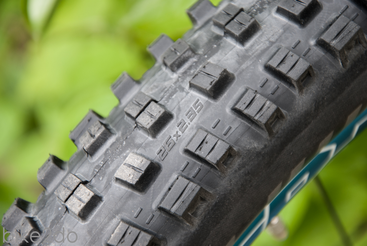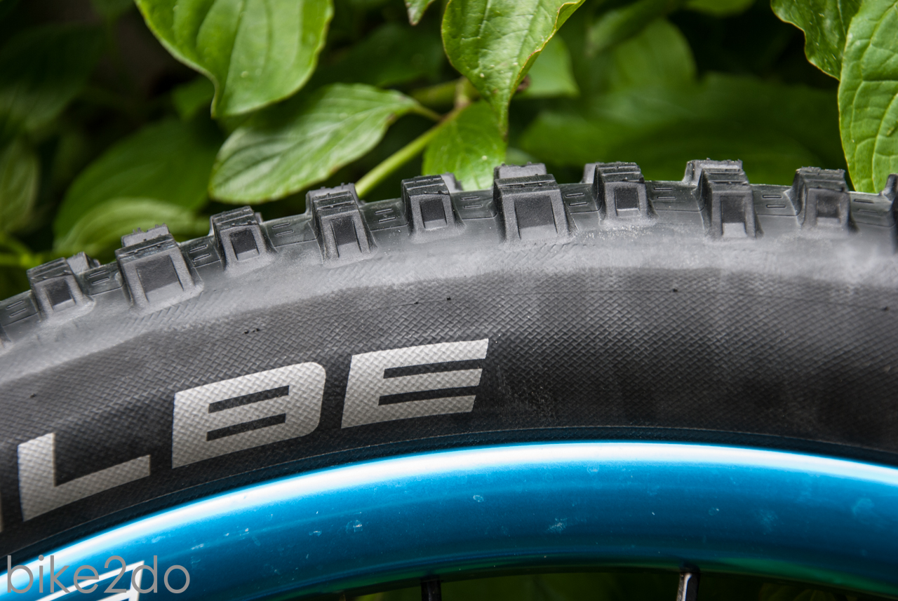 Das neue Profil kann also überzeugen und dank des niedrigen Gewichts lässt sich sogar noch gut an rotierender Masse sparen, was man wiederum an der guten Beschleunigung merkt. Der Reifen harmoniert bezüglich seiner Eigenschaften wirklich erstaunlich gut. Beim Thema Haltbarkeit war ich sehr zurückhaltend, denn mein letzter Schwalbe Reifen – ein Nobby Nic Evo 2013 – hatte sich innerhalb weniger Monate quasi selbst zerstört. Abgerissene Flanken waren da normal. Der Neue macht sich hier deutlich besser und so konnten wir nach unsere Testzeit keinen übermäßigen Verschleiß feststellen.