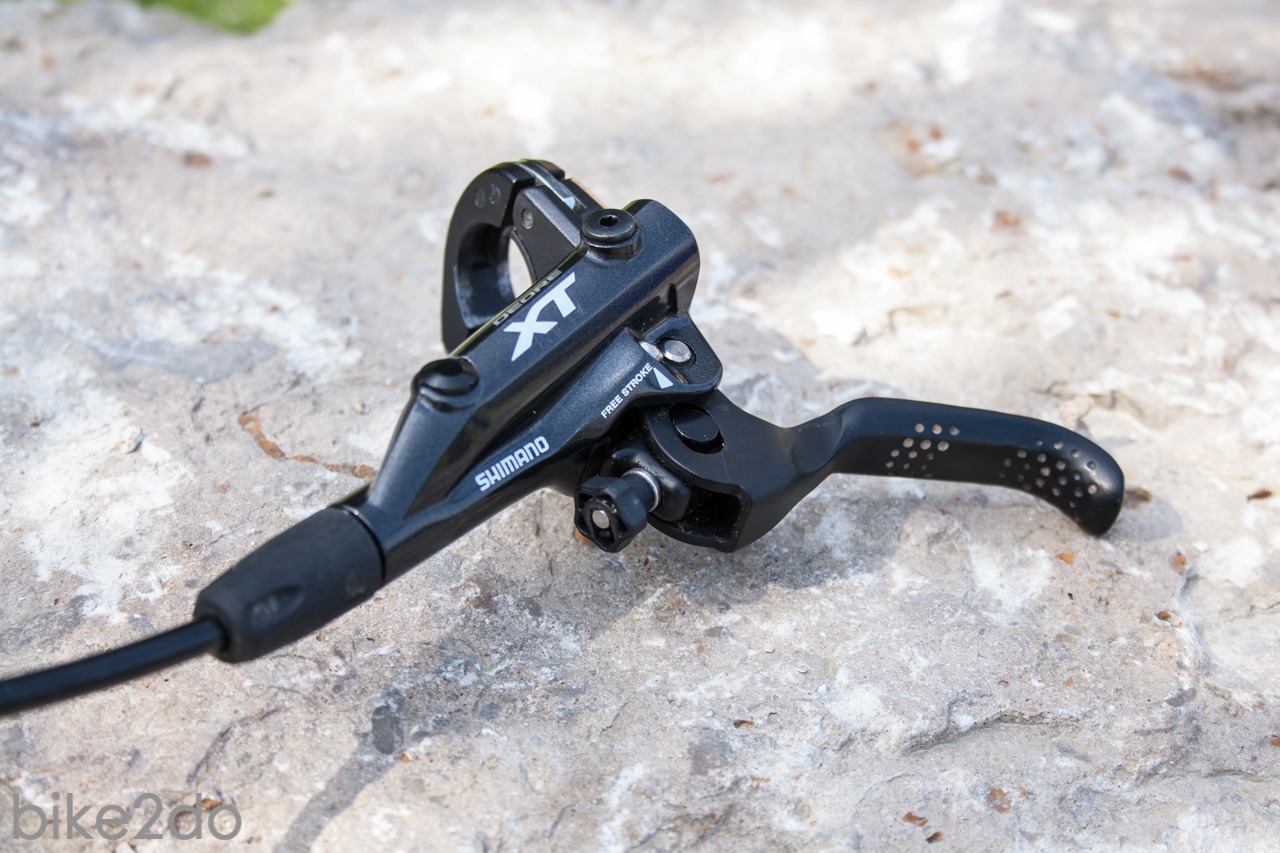 Im Test musste sich die XT Bremse auch mit unserem Referenzstopper, der Hope Tech3 X2, messen. Was die reine Bremskraft betrifft, musste sich die XT Bremse im Vergleich absolut nicht verstecken. Unterm Strich hat der Shimano Stopper hier sogar mehr auf dem Kerbholz als die Hope. Die Bremse ermöglichte bei meinen 72 kg Kampfgewicht am leichten XC Racer auf Wunsch zu jeder Zeit ein Blockieren des Vorderrads, die Hope Bremse schaffte das aktuell nur im abgekühlten Zustand. In Bezug auf die Dosierbarkeit kann die XT Bremse jedoch nicht mithalten. Der Druckpunkt bei der Tech3 X2 ist definierter und der Anfangswiderstand am Hebel ist geringer. Zudem ist der Leerweg des Hebels bis zum Anliegen der Beläge an der Bremsscheibe (bei beiden Bremsen auf das Minimum gestellt) bei der Hope Bremse deutlich geringer. Der Spalt zwischen Belag und Scheibe ist bei der Hope allerdings auch geringer als bei der Shimano Bremse. Die Hebelweiteneinstellung beider Bremsen funktionierte tadellos. Die Einstellung am Shimano- Bremshebel geht dabei leichter von der Hand und ermöglicht zudem eine größere Spanne in Bezug auf den Abstand des Hebels zum Lenker. Beim Gewicht liegt jedoch die Hope Bremse deutlich vorn. Hier wiegt die Vorderbremse mit einer Leitungslänge von 90 cm 234 g, die Hinterbremse 251 g bei einer Leitungslänge von 170 cm. Die Shimano XT Stopper wiegen 255 g bei 77 cm Leitungslänge (Vorderrad) und 296 g (Hinterrad). Beim Preis schneidet die Shimano XT Bremse hingegen wieder besser ab. Hier kostet das Bremsenset der aktuellen XT Reihe weniger als eine einzelne Hope, wobei hier allerdings auch andere Maßstäbe an Verarbeitung und meiner Meinung nach auch Ästhetik gesetzt werden.