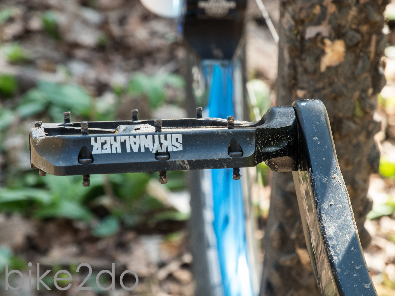 Von der technischen Seite einmal abgesehen bietet Sixpack mit dem Skywalker einfach einen bombastigen Grip. Einmal drauf lassen die Pins meine Shimano AM-41 Schuhe nicht wieder los. Nur ein aktives abheben des Fußen lässt Korrekturen in der Position zu. Gerade in eher technischen Trails wäre mir hier etwas weniger Grip sogar manchmal lieber gewesen. Dafür lässt es sich mit den langen Pins auch sehr gut ziehen, was den Uphill etwas verträglicher macht. In Downhill Passagen verliebt man sich allerdings schnell in den Halt.