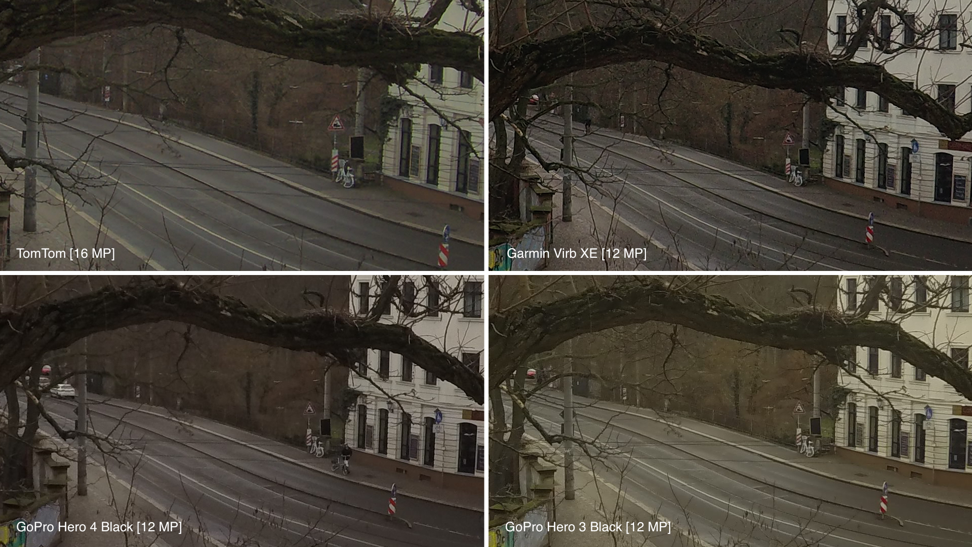 Kommen wir zu dem was eine gute Kamera ausmacht. Die besten Apps und Tools bringen nichts, wenn die Bildqualität die 5 Minuten nicht Wert sind einen Clip für YouTube daraus zu basteln. Hier enttäuscht die TomTom Bandit nicht. Der 16 Megapixel Sensor macht einen guten Job. Was im direkten Vergleich auffällt ist die ausgewogene Farbbalance, vor allem was Weißtöne angeht. Auch scheint die TomTom bezüglich der internen Nachbearbeitung bzw. Komprimierung der Aufnahmen eher ein Minimalprogramm zu fahren. Man könnte sagen die Aufnahmen kommen fast etwas blass rüber. Übertriebene Kontraste, wie sie teilweise die Garmin Virb XE liefert, sucht man bei der Bandit vergebens. Für die Nachbearbeitung ist das allerdings eine solide Ausgangsbasis. Bei den Konkurrenten braucht man dafür Profimenüs, die die direkte Nachbearbeitung der Kamera verhindern. Die Schärfe der Videoaufnahmen ist gut und kann hier durchaus mit der einer GoPro mithalten. Auffällig ist zudem die Neigung zur Vignettierung, also der Abdunkelung in den Randbereichen. Ebenfalls ist anzumerken, das die Optik mit chromatischen Aberrationen (Farbsäumen) im Randbereich zu kämpfen hat, welche sich ca. auf dem Niveau der GoPro 3 Black Edition bewegen.