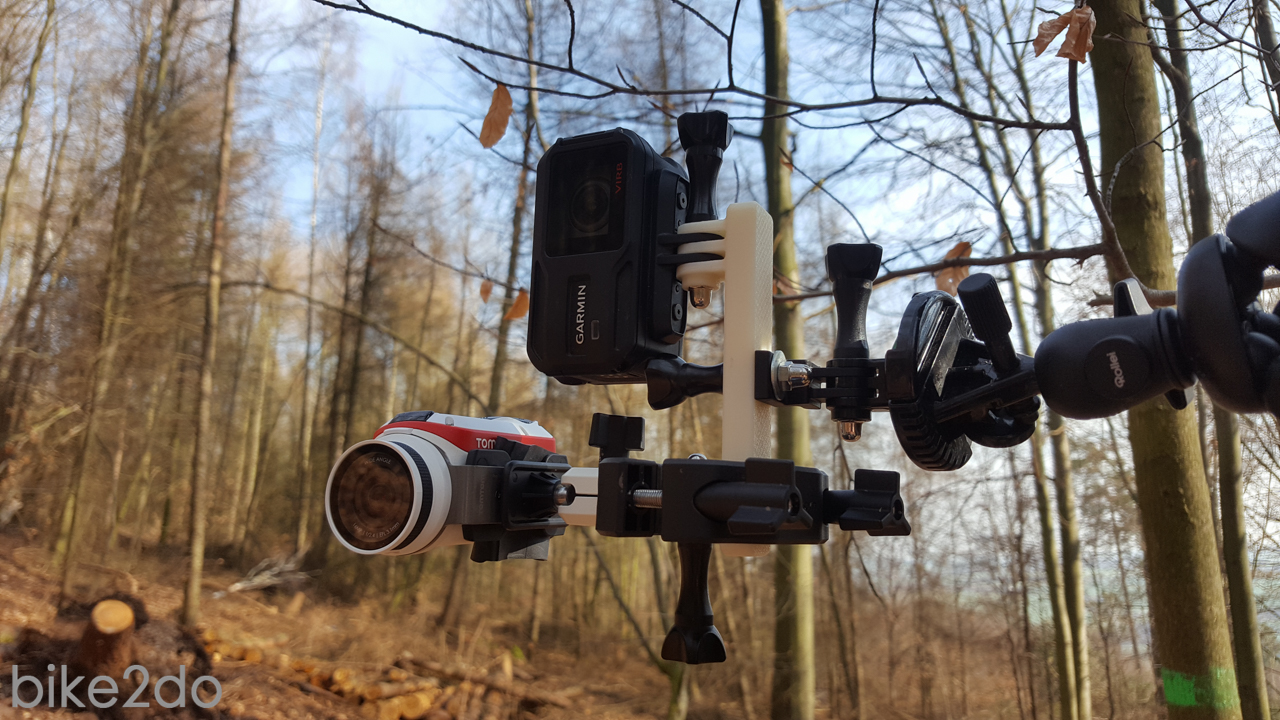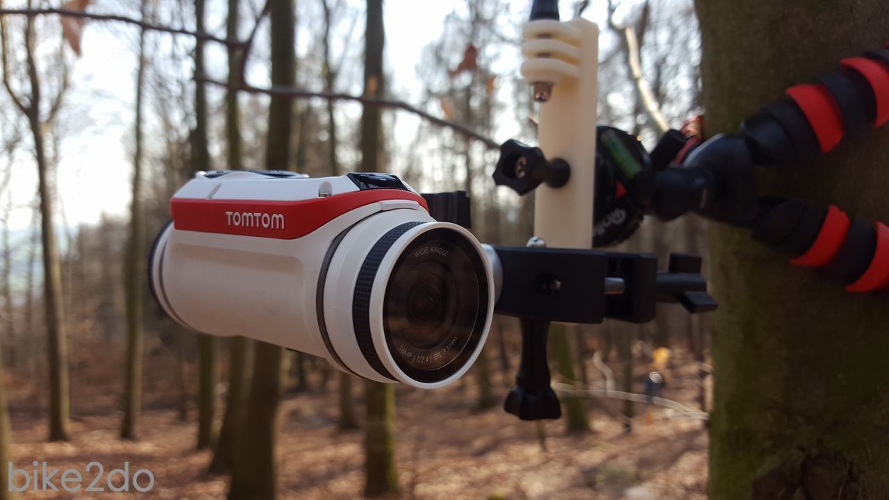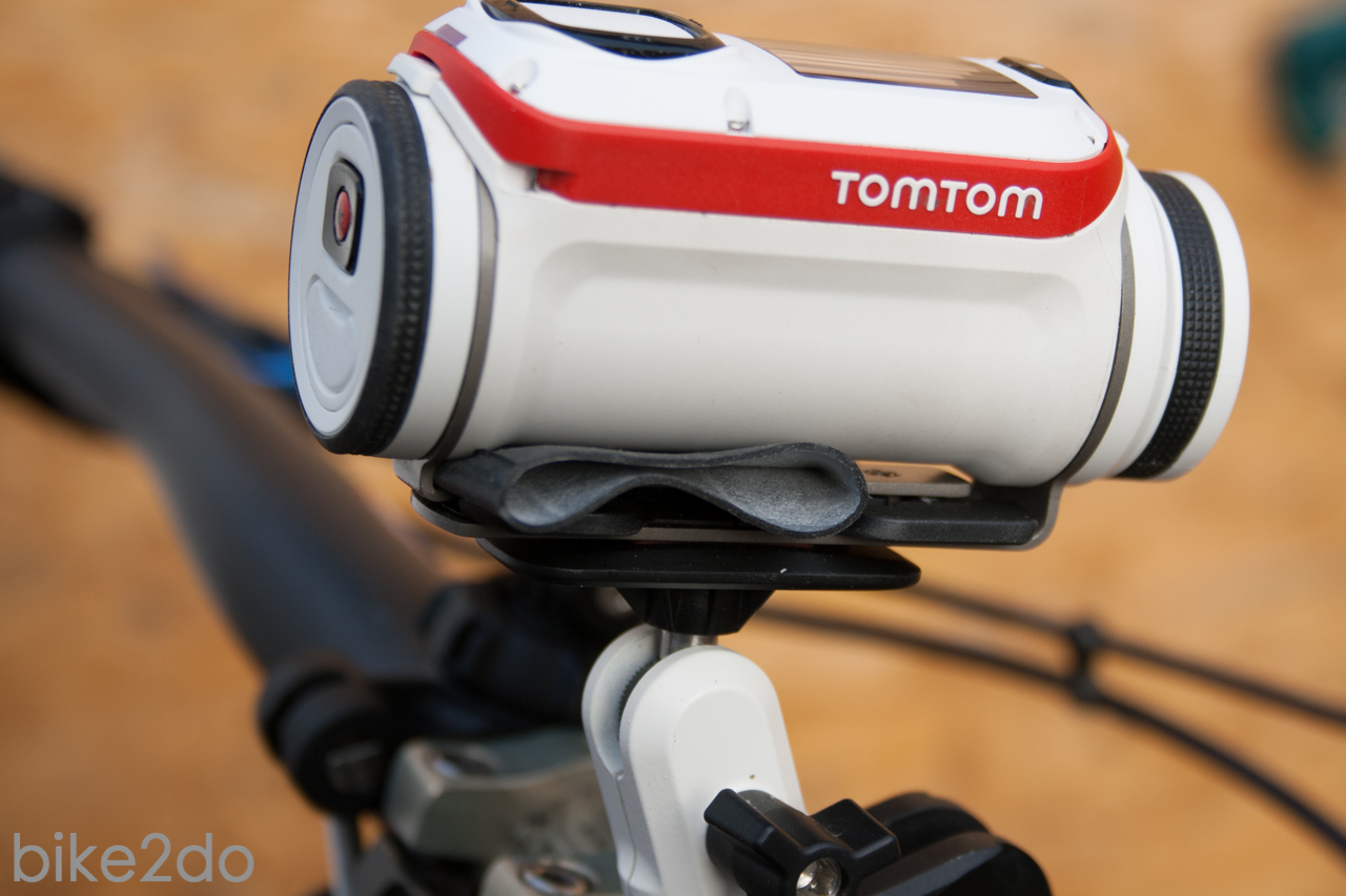 Auf dem Weg zur ersten Aufnahme ist dann erst einmal Umdenken nötig. Denn aufgrund des fehlenden Zubehörs seitens TomTom ist im Auslieferungszustand keine Montage vor der Brust möglich. Auch die Montage unter dem Visier eines Fullface Helmes ist nicht möglich. Für Biker bleibt letztendlich nur die Montage seitlich am, oder oben auf dem Helm und per Rohrhalter am Bike selbst. Das alles bezieht sich aber nur auf die TomTom eigenen Montagemöglichkeiten. Dank des beiliegenden Adapters zur üblichen GoPro Halterung ergeben sich aber zumindest ein paar weitere Möglichkeiten. So ist dann zum Glück auch eine Brustmontage möglich, den entsprechenden Chesty Gurt von GoPro vorausgesetzt. Leider sind die Klebepads, die man üblicherweise für den Helm nutzt, bei unserem Testmuster nur in gerader und nicht in gekrümmter Ausführung enthalten. Dadurch braucht es am Helm eine absolut ebene Fläche um das Pad vernünftig zu befestigen. Das findet man aber eher selten. Also ist man am Ende auch hier auf die deutlich besseren GoPro Pads angewiesen. Obwohl der Ansatz mit der drehbaren Halterung seitens TomTom echt genial ist, kann das restliche Equipment hier nicht ganz mithalten. Einen Fauxpas leistet sich die drehbare Halterung dann aber doch, denn sie besitzt keine exakte 0 Grad Arretierung. Das bedeutet, dass die Kamera über die Halterung je nach Montageoption beim besten Willen nicht perfekt senkrecht / waagerecht ausgerichtet werden kann. Und leider schwächelt auch der Rohrhalter, zumindest unserer war mit bloßer Handkraft nicht verdrehsicher zu befestigen, es brauchte zu jeder Zeit einen Inbusschlüssel.